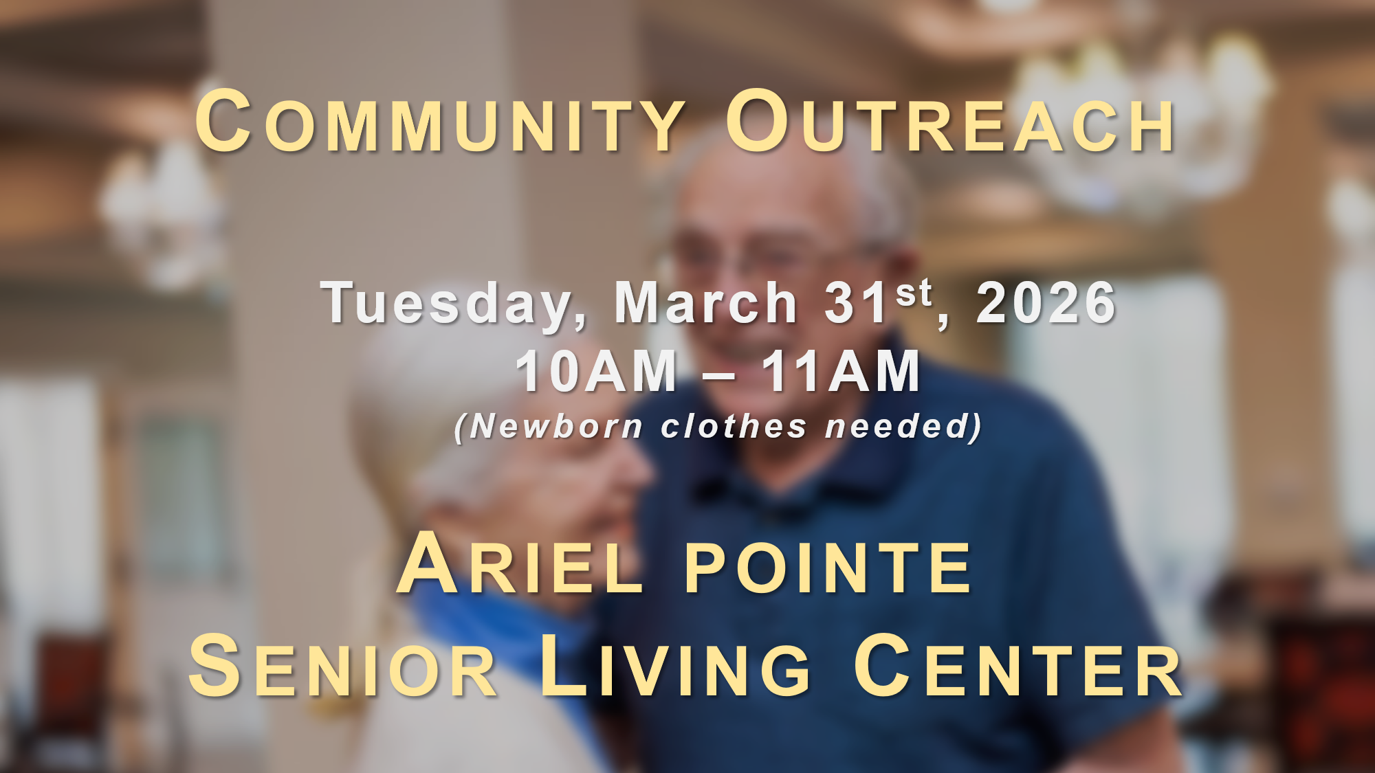 Let’s spend som time ministering to our seniors! Newborn clothes needed.